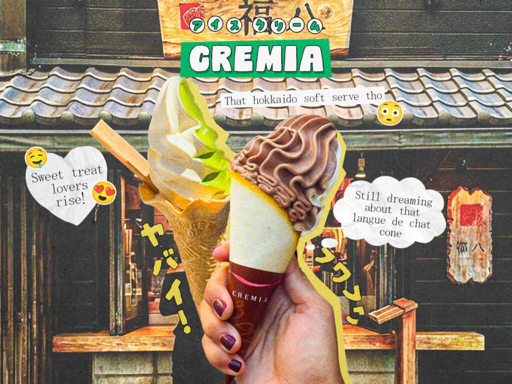 Long day of wandering in Osaka? Reward yourself with Cremia, Japan’s well-loved premium soft-serve ice cream, made with Hokkaido cream and served in a buttery langue de chat cone. It’s smooth, rich, and creamy – everything you’d ever want your ice cream to be.
